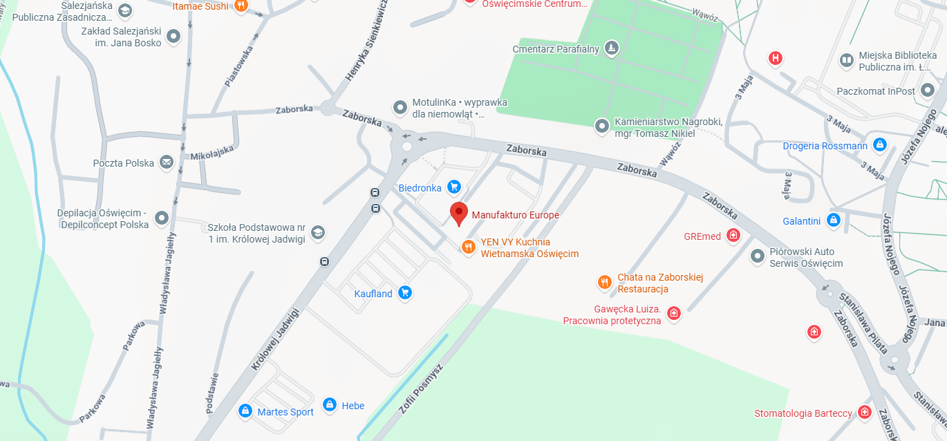 - A bemutatótermet látogatók számára parkoló áll rendelkezésre a Biedronka vagy a Kaufland területén.